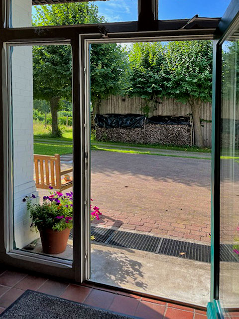 Im Sommer draußen - auch in den Ferien! Bis Oktober und dann, sobald das Wetter es im Frühling wieder zuläßt, tanzen wir auf unserer Wiese hinter dem Haus. Den Winter über nutzen wir unsere helle, gut gelüftete Lohdiele.